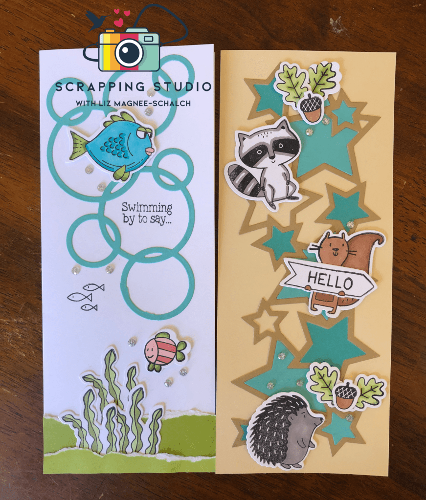 This special includes slimline dies for the bubbles and stars plus you can choose from 4 stamp sets: Little Gnomes, forest animals, fish and phrases. The 3 character sets come with dies for almost all the images making them quick and easy to make these cards.