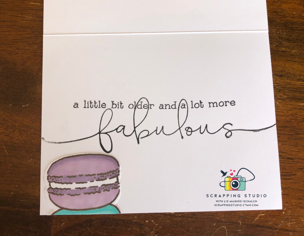 Also had a last minute request from Emilia to make a birthday card for her cheer coach. I used our Ooh La La set and created a faux box with the macarons. Again pulling from the Slimline Celebration for the sentiment.