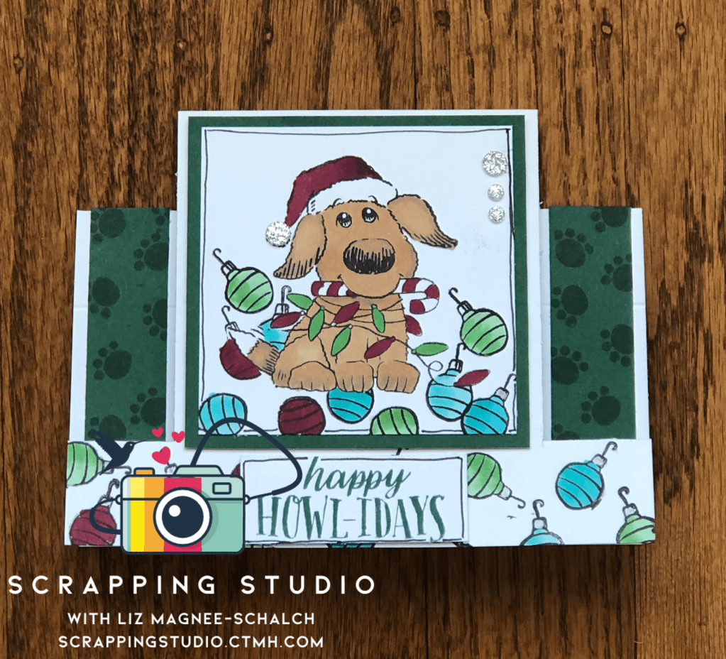 This is a center cut dimensional card with this cute doggie that looks like it has gotten into the tree trimmings.