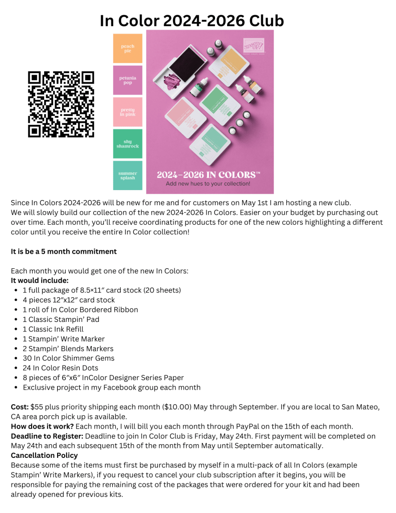 Don’t miss this opportunity to sign up and for the next 5 months get one of the new In Colors inks, pens, paper and embellishments.