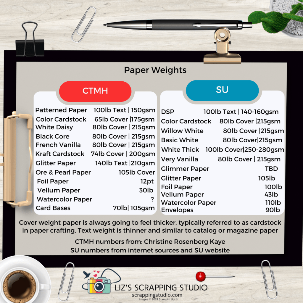 So I did a bunch or research and found the best sources for breaking down the difference between CTMH papers and Stampin’ Up! paper weights.