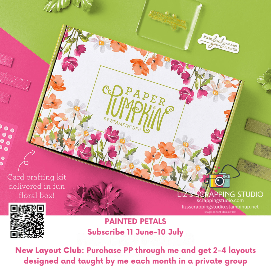 Here’s the exciting part: If you love the idea of transforming Paper Pumpkin supplies into scrapbook magic, I’ll be offering exclusive access to a private video tutorial in July! This video will showcase the entire layout creation process, but there’s a catch: access is only available to those who subscribe to Paper Pumpkin through me.