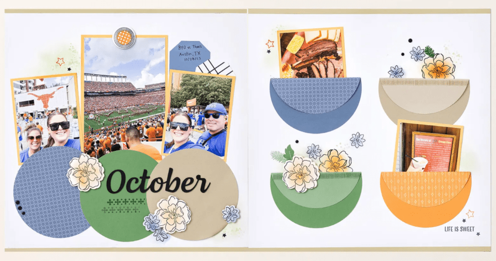 I also wrapped up my Virtual Album Retreat, and one of my pages might be a new favorite. I used a bunch of simple circles to create a Disney Halloween layout, and it turned out so fun! 🎃🐭