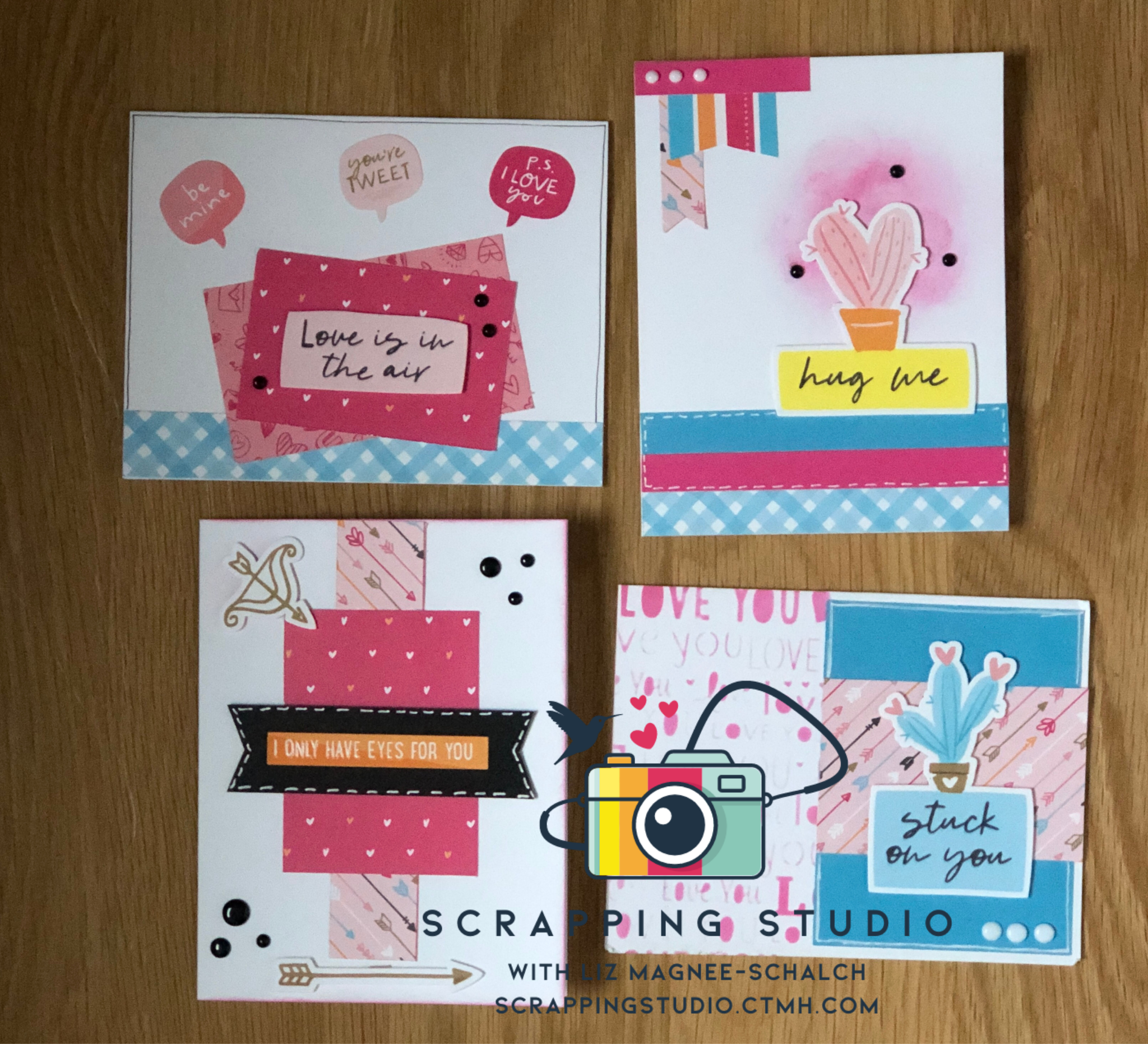 For this workshop I used the Smitten paper and sticker sheet plus for the cards I used the Smitten Stamp and Thin cut set.